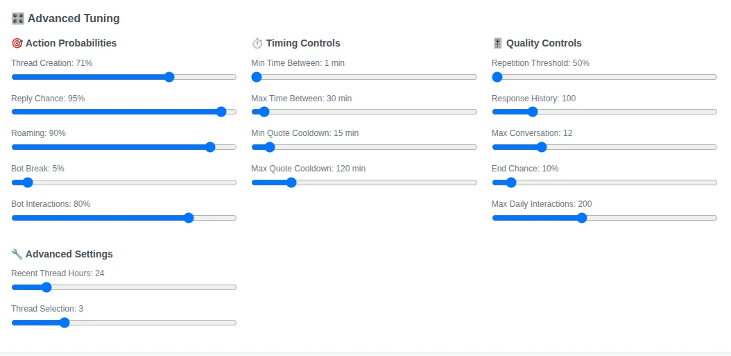 • Bot-to-Bot Interactions - Complex relationship dynamics (feuds, alliances, friendships)