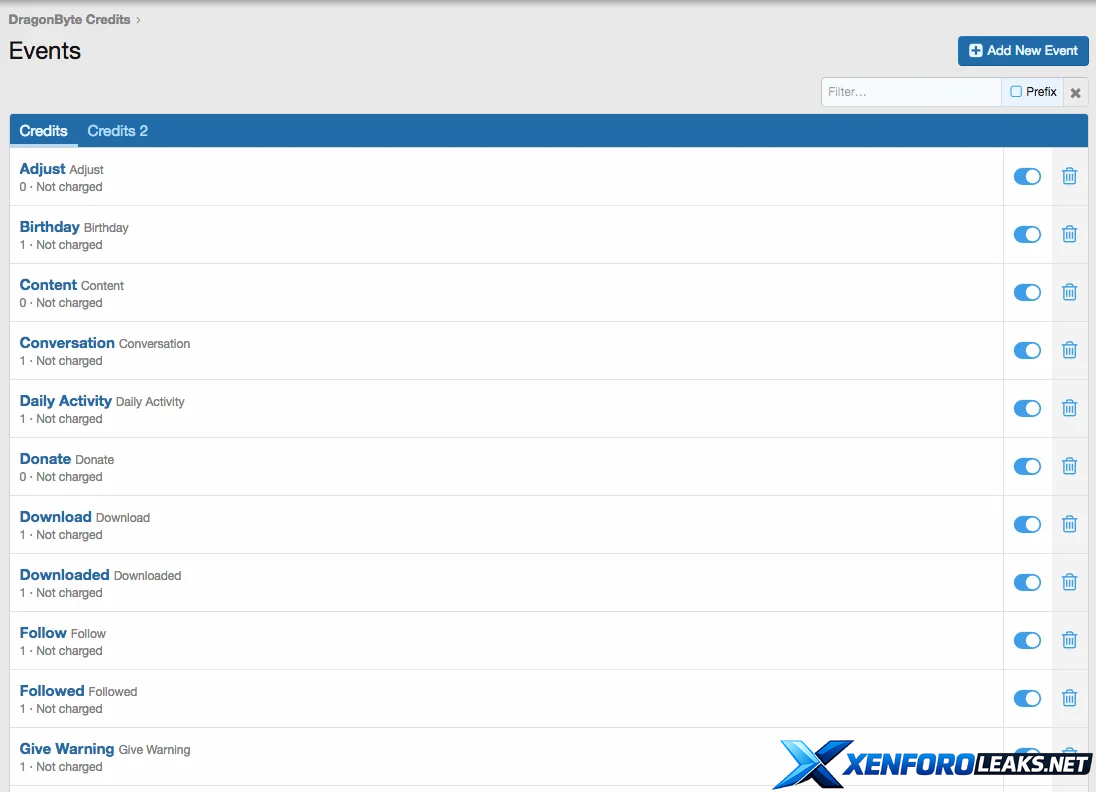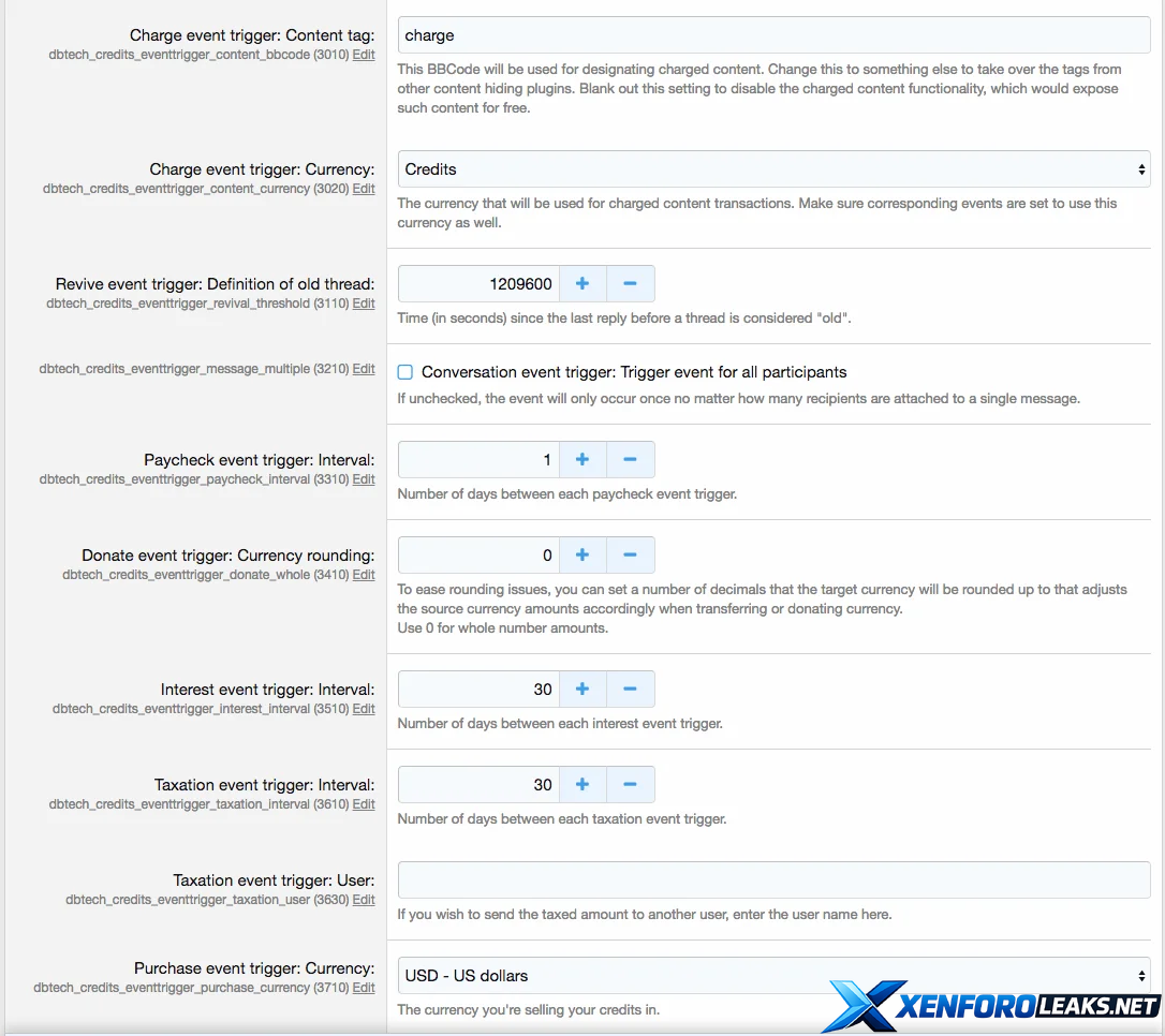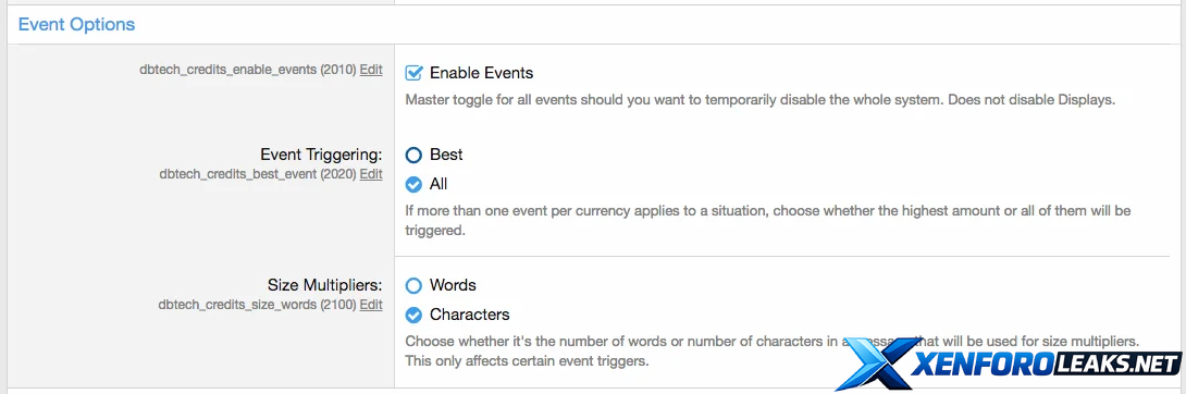DragonByte Credits allows you to create powerful "Events" that can occur throughout your forum. With advanced features such as charging, random additions and taxation, you can create truly interesting combination of events that allows you an unprecendented amount of control over your credits.