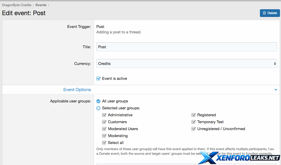 33. XenForo Media Gallery Download - Usergroups that can be affected by this event