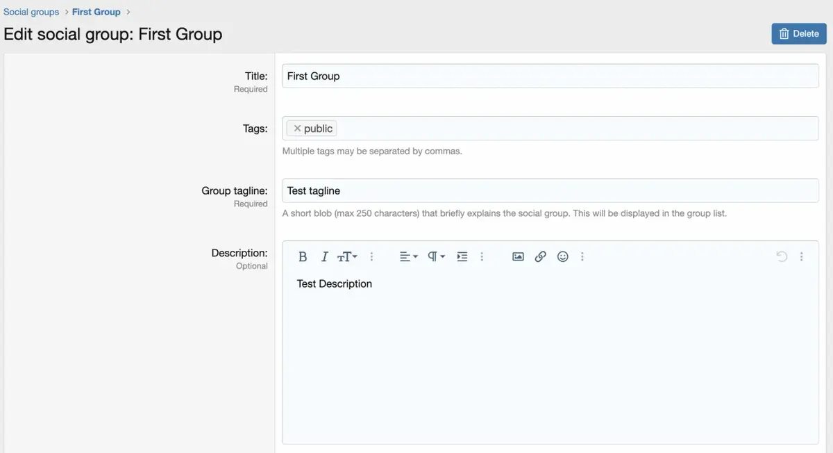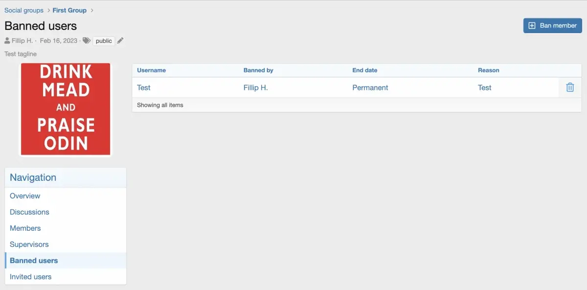 Customisable: Social group creators can upload icons and banners (if permitted by the user group permissions), allowing them to truly make their social group their own. Group admins can also add a description and a set of rules that must be accepted before joining. They can require all members to be manually approved by themselves or a group supervisor, or even turn off new members joining the group altogether.
