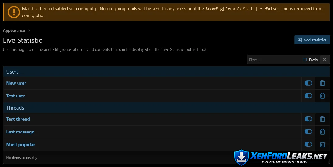 • User statistics