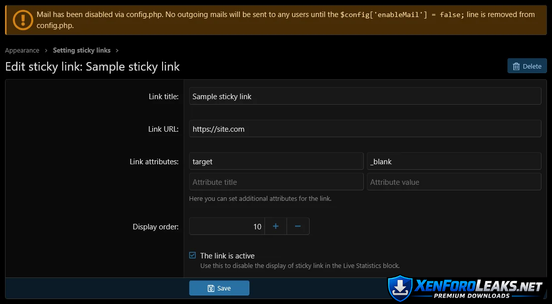 • Sticky links