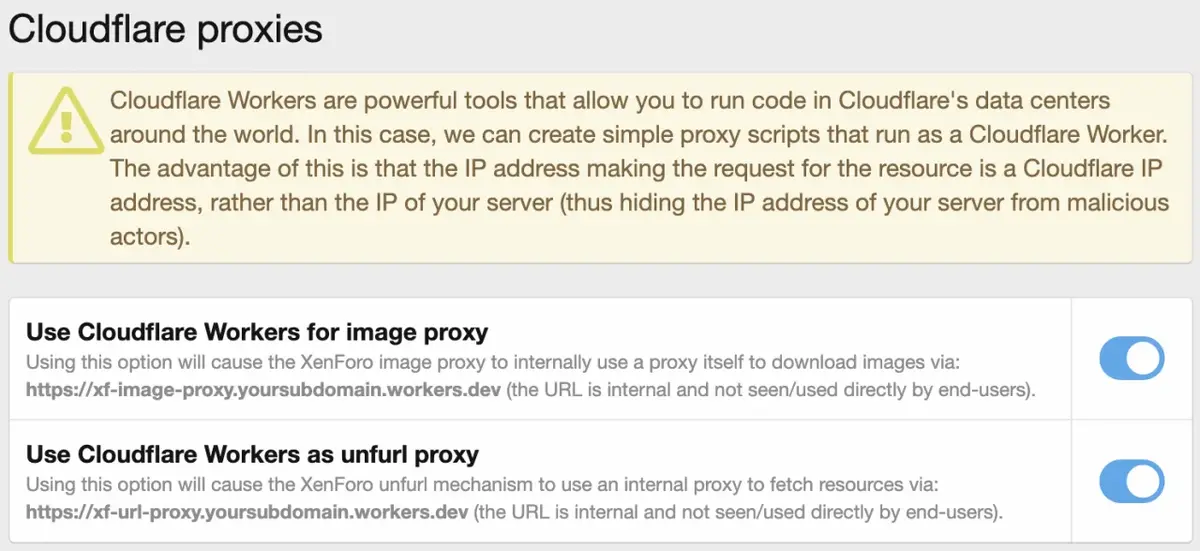 • Use Cloudflare Workers as proxy to hide your server's origin IP address for certain XenForo functions: