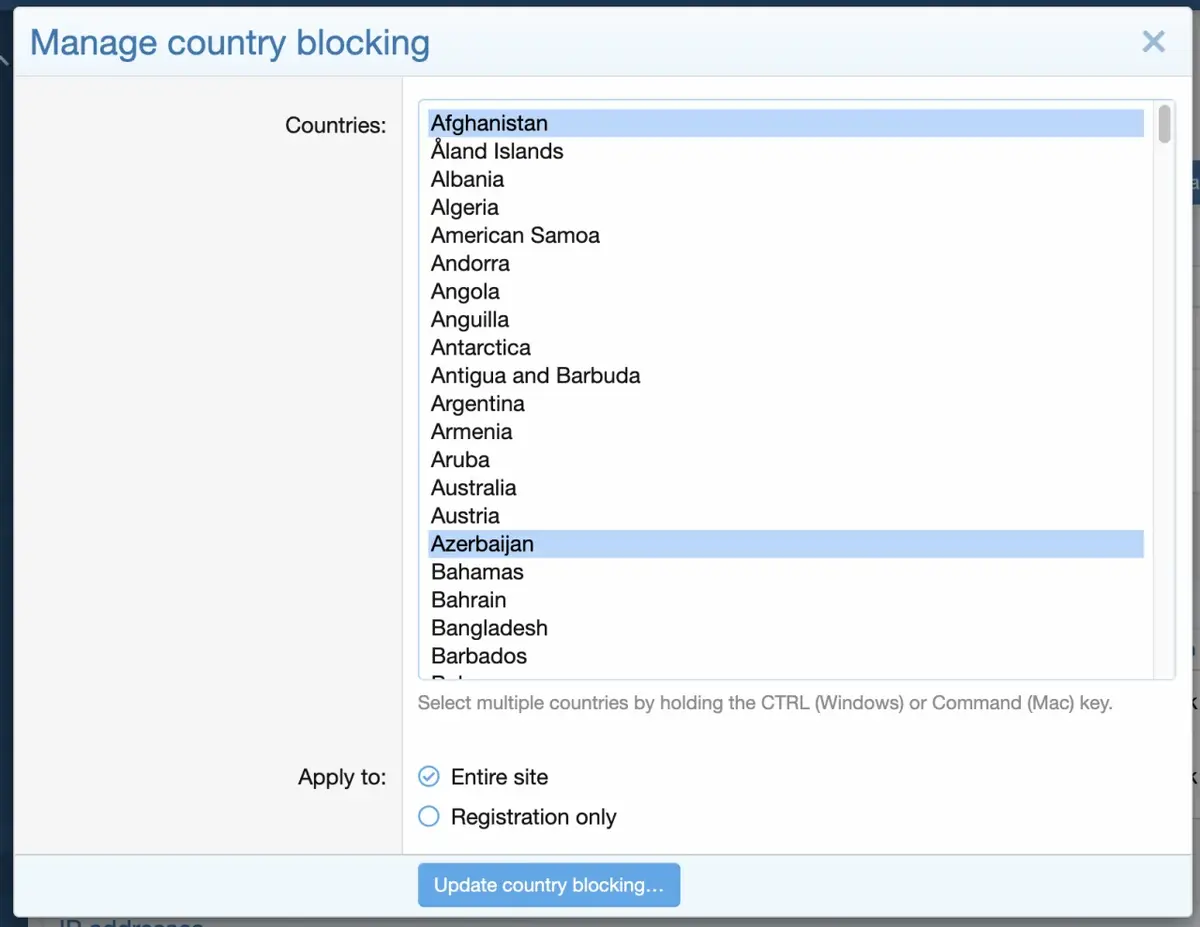 • Manage country-level traffic blocking (includes Tor exit nodes).
