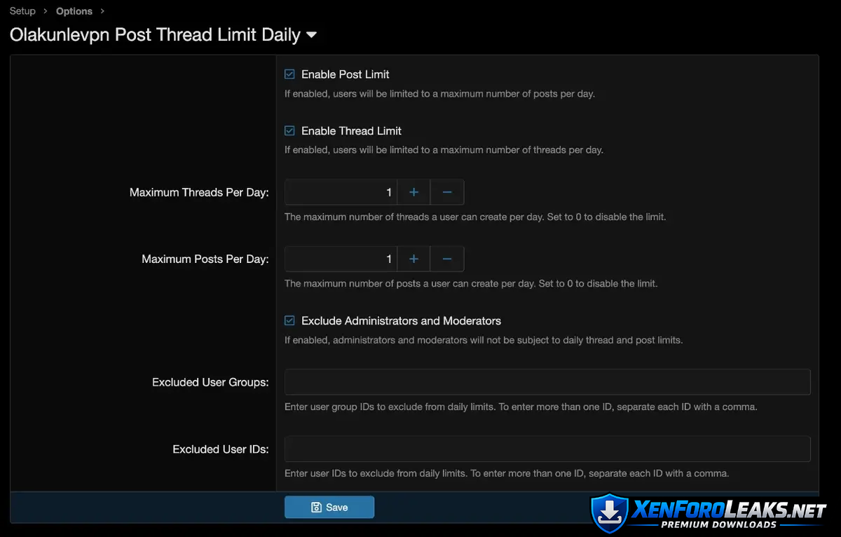 This addon allows administrators to set daily limits on the number of threads and posts users can create.