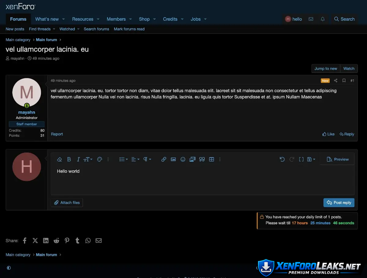 - Visual indicators showing users their remaining posts/threads for the day
