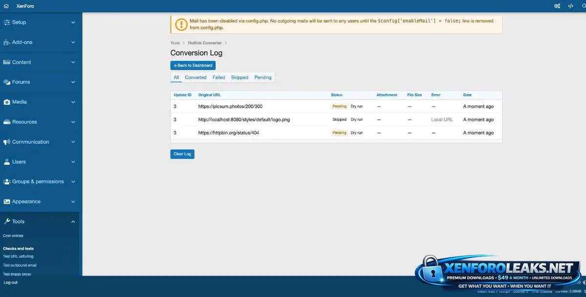 • Live Conversion - Downloads external images, creates XF attachments, and replaces tags with [ATTACH=full] tags. Runs as a resumable background job.