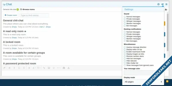 • Repost in selected rooms - Allows you to automatically repost the messages you post in this room in other rooms (admin option)