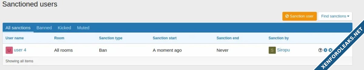 • User sanctions (Mute/Kick/Ban)