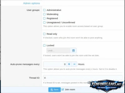 - Read only - Allows you to make room read-only (admin option)