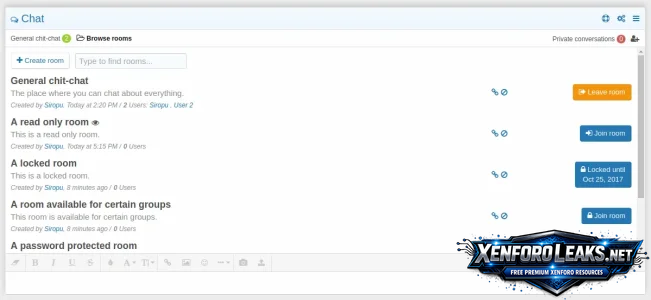 - Rooms (with embed option)