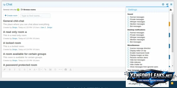 - Repost in selected rooms - Allows you to automatically repost the messages you post in this room in other rooms (admin option)