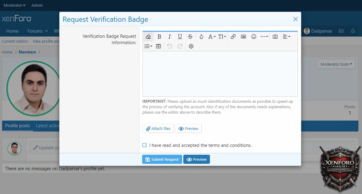 • Users can write a comment and attach files while requesting verification badge
