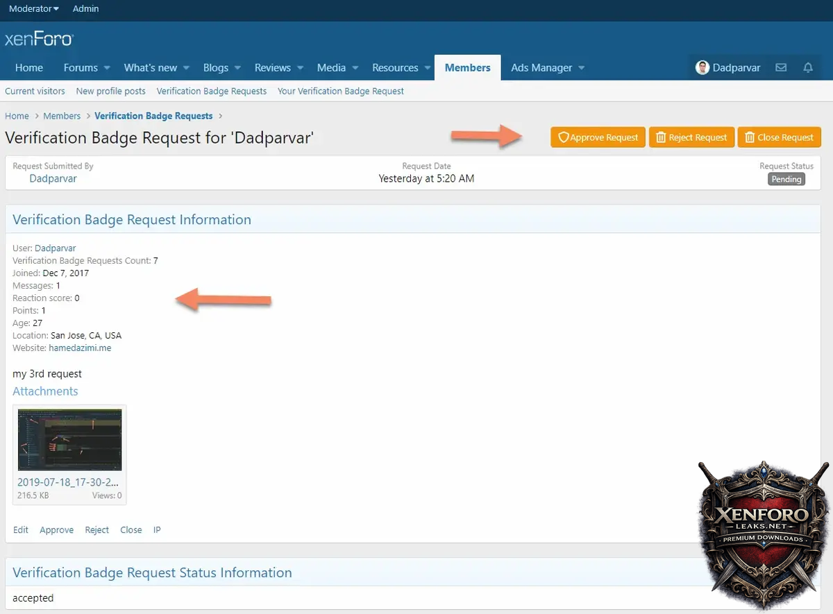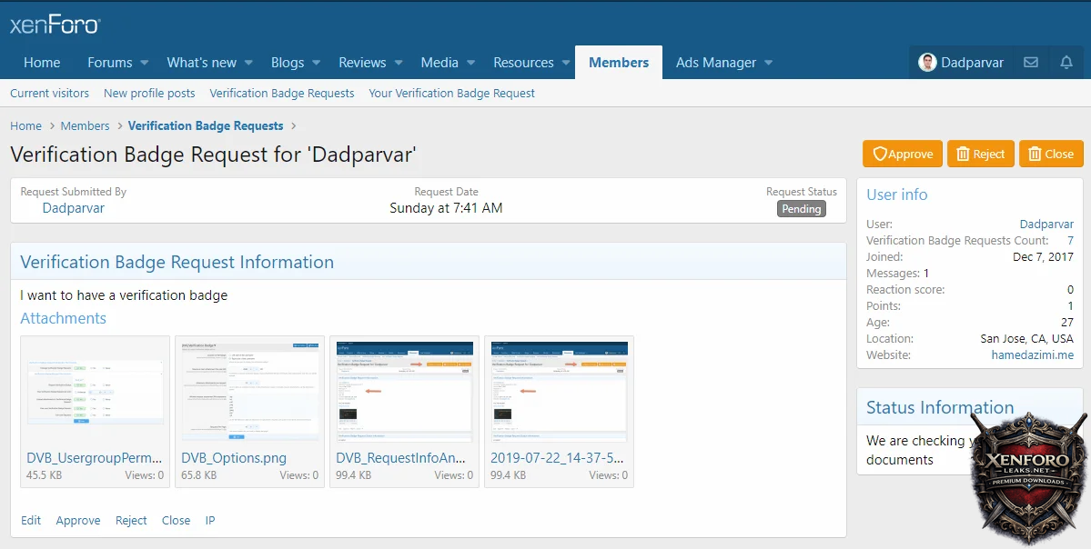 • User's account info/details in request page ("Verification Badge Requests Count" will also show user's all requests)