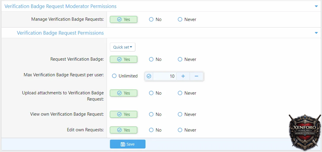 • Each user can ask for verification badge x times (user group permission)