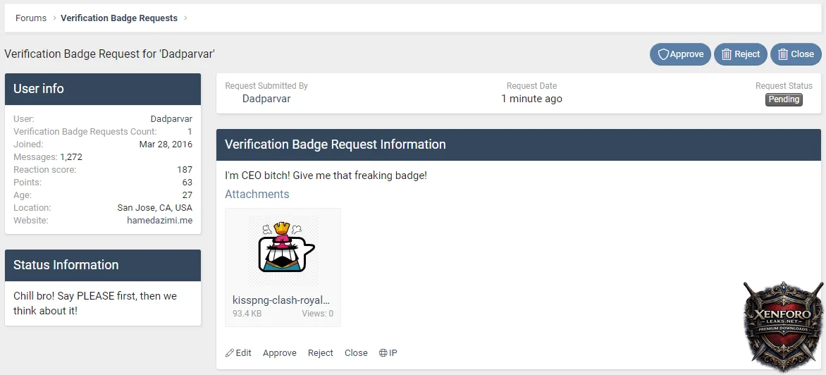 • Rejected requests will lose their verification badge (in the case when another moderator manually granted them the badge while you were checking their request)