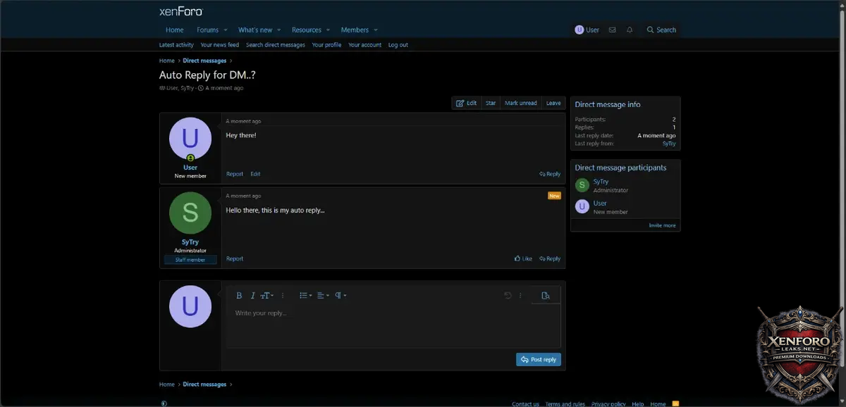 This add-on allows you to add auto reply for direct messages.