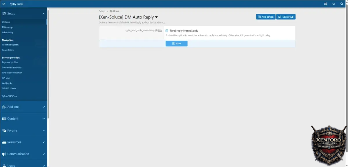 - Copy the src/addons/XenSoluce/DMAutoReply directory to your server.