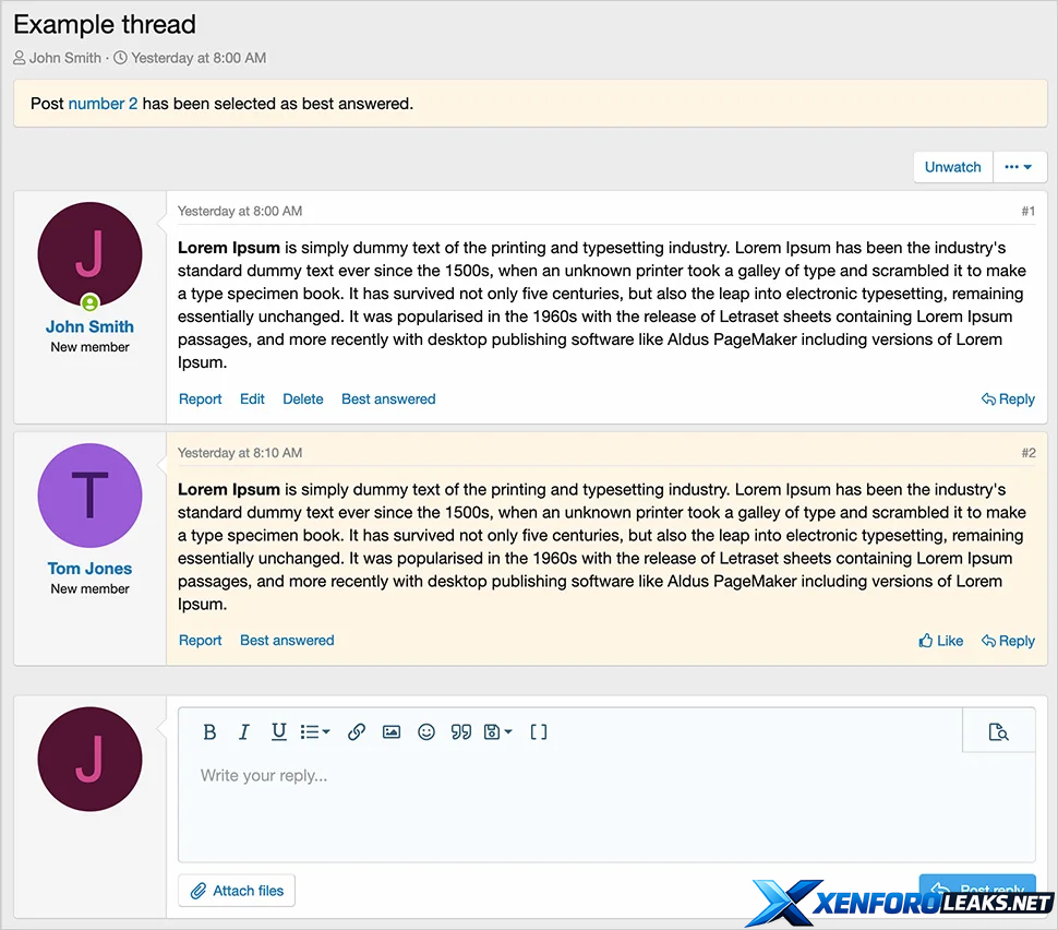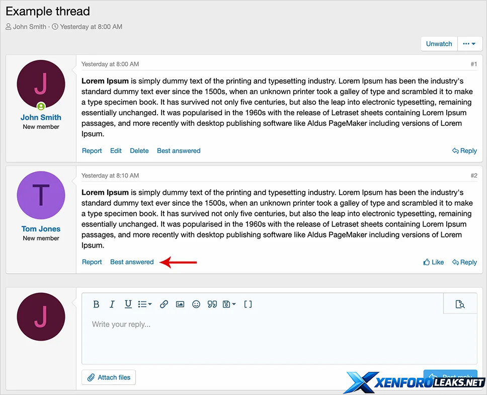This add-on is designed to allow either the thread starter or staff to select the best answered reply. Visitors will be able to quickly find the very best answer in the thread.