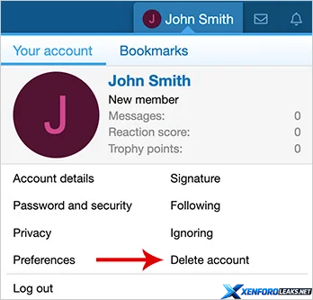 (Example of Delete account link in visitor account menu)