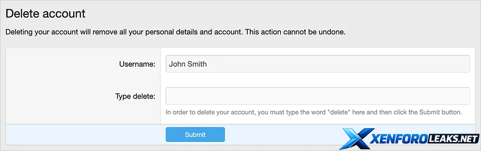 (Example of Delete account page)