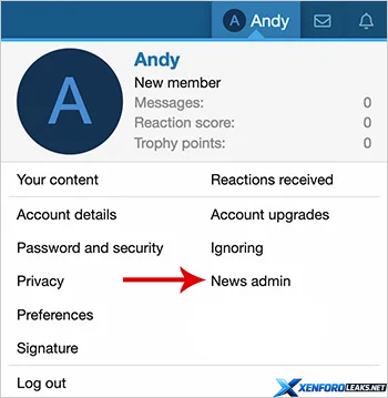 (Example of News admin link)