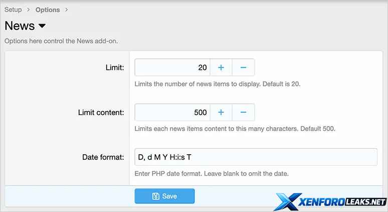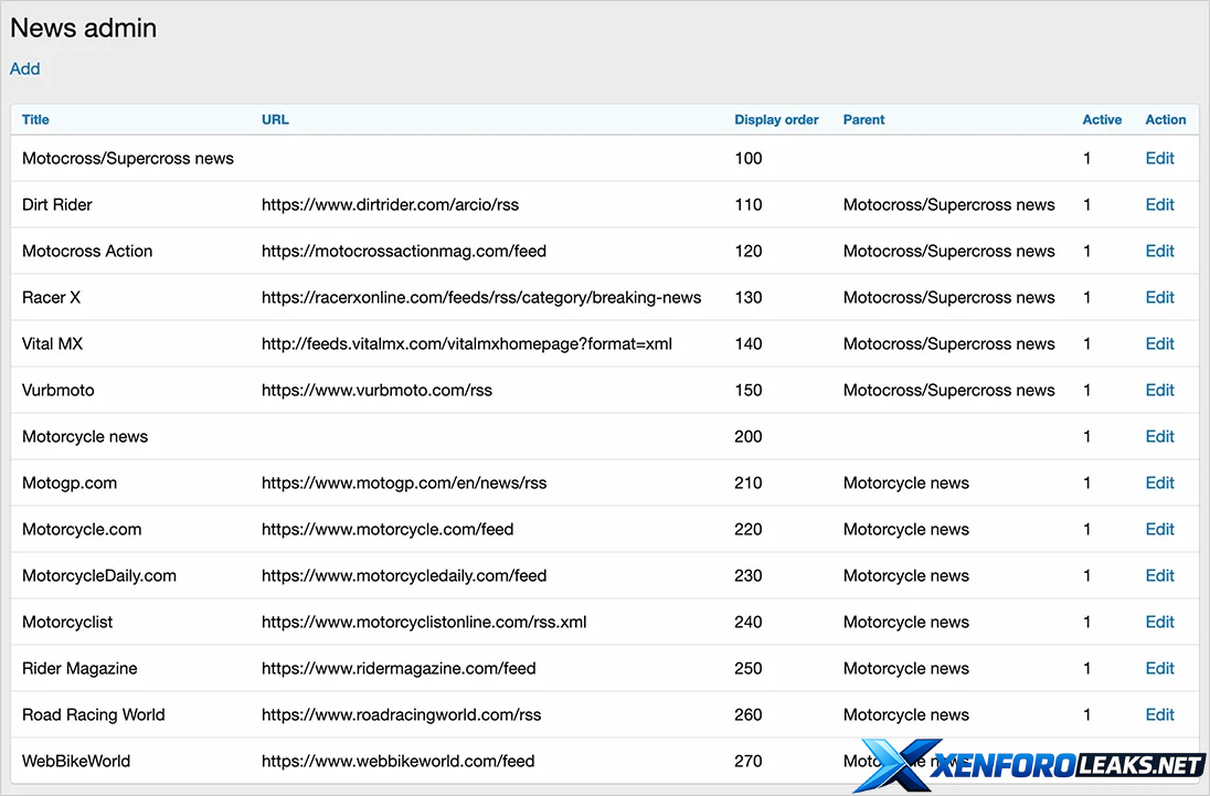 (Example of News admin page)