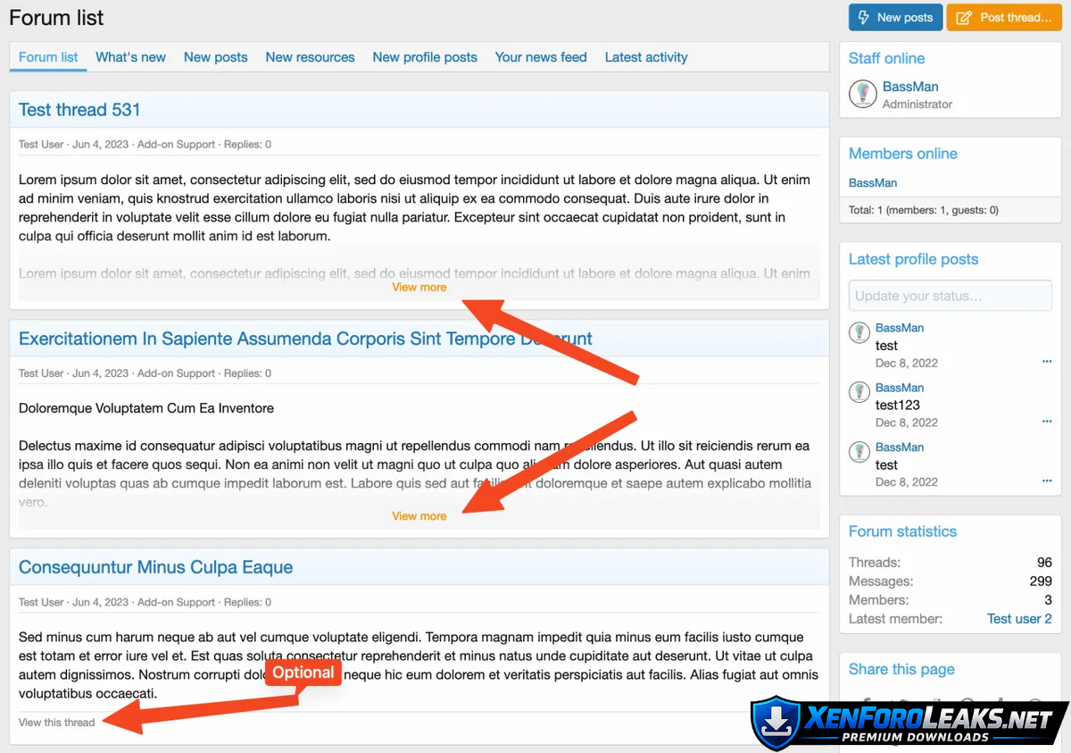 Use the New Thread Widget with an extended option and some additional features. When displaying the New Threads Widget with an expanded option, an expandable "View more" link is available for longer posts.