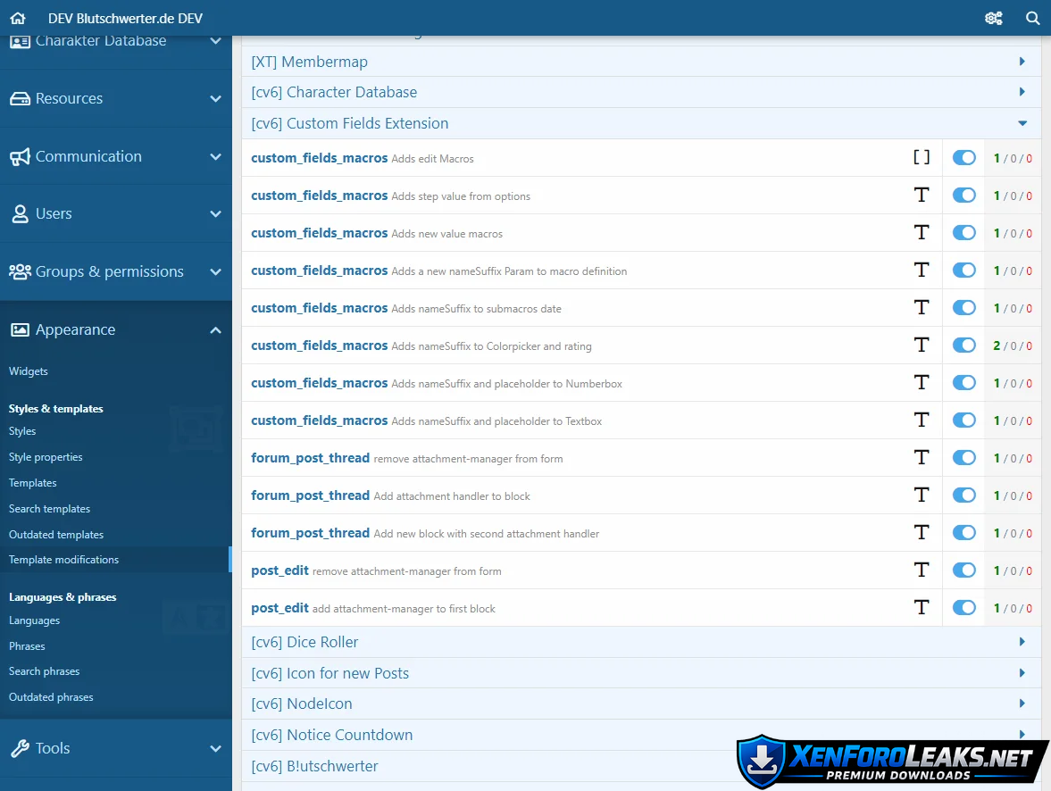 - Template Modifications