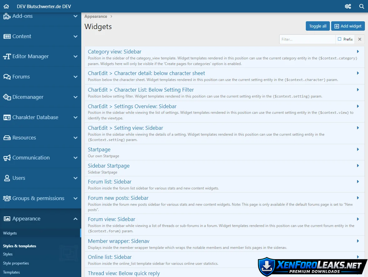 - Widgets
