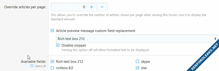 This add-on allows you to replace the article preview text with a value from a text custom field that you specify in the forum settings.