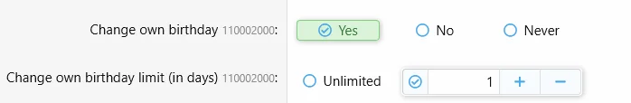 Allows edit own birthday to users with permission and cooldown.