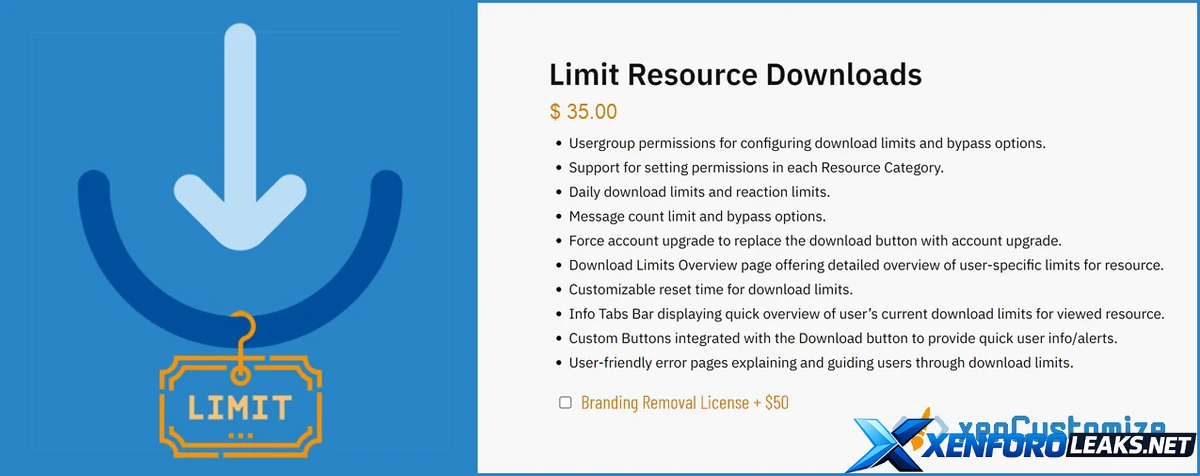 [XenCustomize] Limit Resource Downloads 2.3.3 - Gives forum admins powerful control over resource downloads by allowing them to set limits