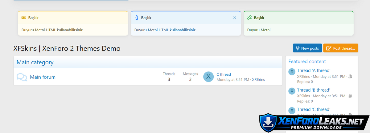 XFSkins - Announcement Manager allows you to create announcements that appear as cards at the top of the page and can be easily managed from the admin panel.