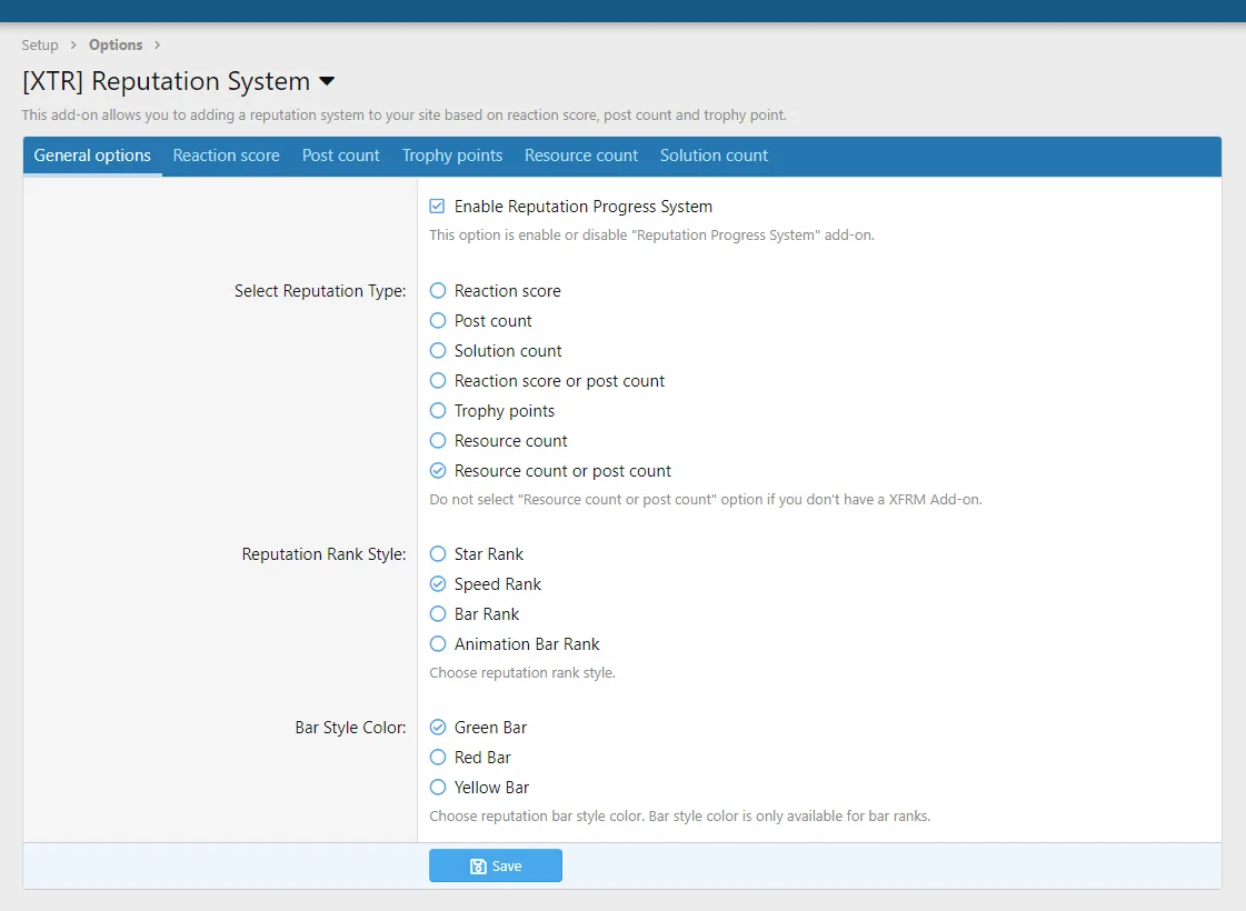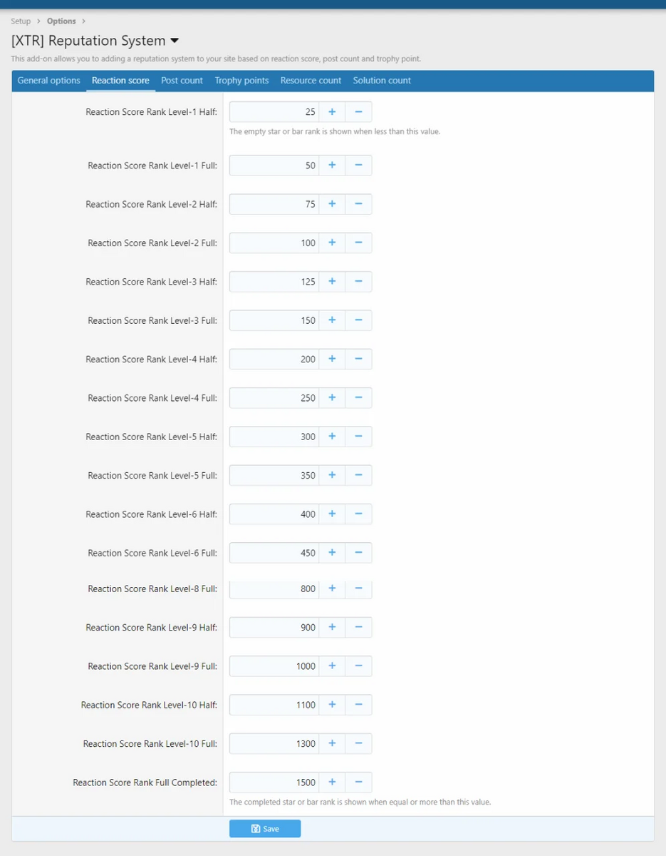 [XTR] Reputation System 1.0.4 - Allows adding a reputation system to your forum based on reaction score, post count and trophy point